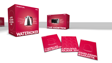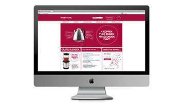 Voorstel corporate identity voor Inventum. De productverpakkingen zijn ingezet als 'dragers' voor advertenties. Deze krachtige beeldtaal is ook doorvertaald naar andere uitingen en de online verkoopkanalen.