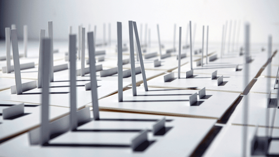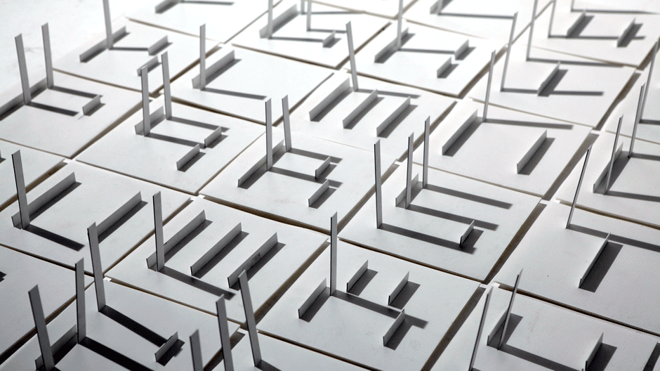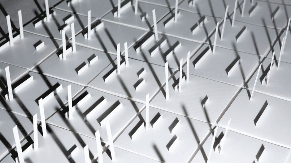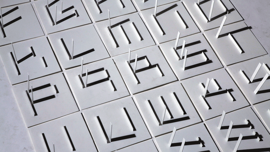 Het lettertype is een ruimtelijke installatie (2x3m). Opgebouwd uit horizontale en verticale vlakken. De schaduwen vormen de letters en zijn enkel leesbaar wanneer de lichtbron op de juiste plek staat.