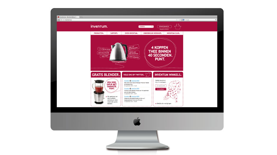 Voorstel voor corporate identity voor Inventum. De productverpakkingen zijn ingezet als 'dragers' voor advertenties. Deze krachtige beeldtaal is ook doorvertaald naar andere uitingen en de online verkoopkanalen.