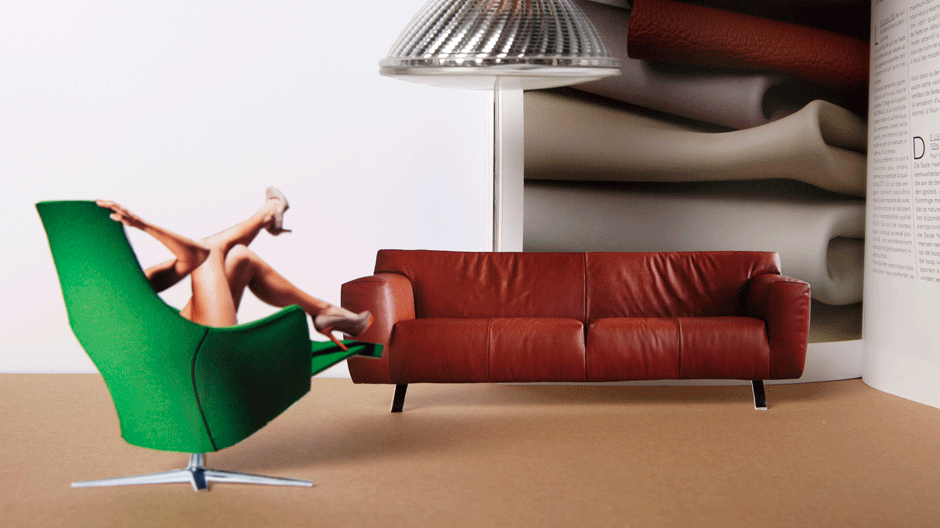 Met bestaand beeldmateriaal (van de leveranciers) zijn ruimtelijke collages gemaakt en opnieuw gefotografeerd. Deze techniek biedt flexibele mogelijkheden voor styling, decorbouw en vormgeving.